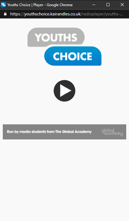 - <a href=”javascript:;” id=”player_button” class=”player_button player_button–header” onclick=”window.open(‘https://youthschoice.kairandles.co.uk/radioplayer/youths-choice/’, ‘YouthsChoicePlayer’, ‘toolbar=0,scrollbars=0,location=0,statusbar=0,menubar=0,resizable=0,width=420,height=660’);” style=”top: -60px !important;right: 40px;” data-wpel-link=”internal”> <span class=”player_button__label”>Listen</span><br>